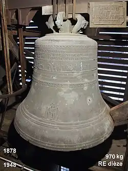 - Bettemburg Glocke (lux.: Beetebuerger Klack) mit einem Gewicht von 970 kg, geweiht dem hl. Josef mit der Inschrift: Sancte Joseph, Patronae Ecclesiae Catholicae Ora Pro Parochia Bettemburgensi. Sie ist auf den Grundton RE dièse gestimmt. Die Glocke wurde 1878 in der Glockengießerwerkstatt Goussel-François Metz gegossen und hing bis 1948 in der Kirche von Bettemburg. Sie wurde von Pfarrer P. Weidert gekauft, um die im Zweiten Weltkrieg zerstörte Nikolausglocke zu ersetzen.
