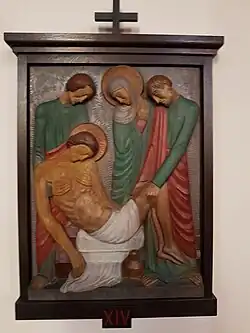 Die Kreuzwegstationen wurden von Jos Jungblut aus Remich aus Eichenholz geschnitzt.