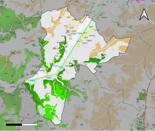 Rezentes Alluvium ist im Tal der Côle und im Seitenarm von Lempzours zugegen (Formation K).
