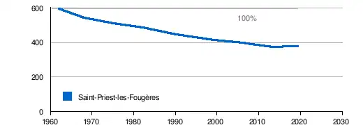 Die Bevölkerungszahlen von Saint-Priest-les-Fougères waren bis 2013 rückläufig, scheinen aber sich seitdem zu stabilisieren.