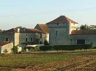 - Die einschiffige romanische Kirche Sainte-Colombe ist der Hl. Kolumba von Sens geweiht – einer im Mittelalter in Westeuropa recht populären Heiligen. Der Kirchenbau entstammt hauptsächlich dem späten 12. Jahrhundert und gehört zu den schönsten in der Charente: Die ersten vier Joche der Außenwand des Kirchenschiffs sind aus gut behauenen Steinen errichtet und durch hohe Blendarkaden mit kleinen Fensteröffnungen gegliedert. Am östlichen Joch jedoch fehlt dieses Gliederungselement: die Außenwand ist ungegliedert – ebenso wie die der Apsis; dies weist – zusammen mit dem deutlich schlechter behauenen Steinmaterial – auf eine frühere Bauzeit der Ostpartie der Kirche hin. Die Westfassade ist durch vier Strebepfeiler und ein mehrfach gestuftes Archivoltenportal vergleichsweise reich gegliedert; im oberen Teil ist figürlicher Bauschmuck (Evangelistensymbole etc.) erkennbar – im Westfenster werden sogar die eingestellten Säulen durch zwei stark überlängte Figuren der Hl. Kolumba und des Hl. Petrus (oder des Hl. Augustinus, des Begleiters der Hl. Kolumba) ersetzt. Darüber umzieht ein figürlicher Konsolenfries (eine Konsole zeigt einen Penis) sowohl die Fassade als auch die ersten vier Joche des Kirchenbaus; die Westfassade endet in einem zweibogigen Glockengiebel. Der Kirchenbau wurde im Jahr 1973 in die Liste der Monuments historiques[2] aufgenommen.