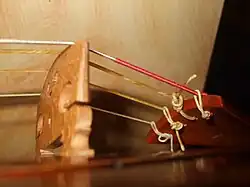 - als Anhängesaite („Hängelsaite“) zur Befestigung des Saitenhalters am Korpus bei Geige, Bratsche oder Cello