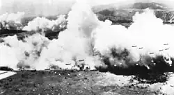 Darüber im 450 m Höhe flogen Mitchell-Bomber paarweise mit sechs A-20-Havocs. Ihre Aufgabe war es, einen Rauchschutz zu legen, nachdem die letzte Splitterbombe explodiert war.