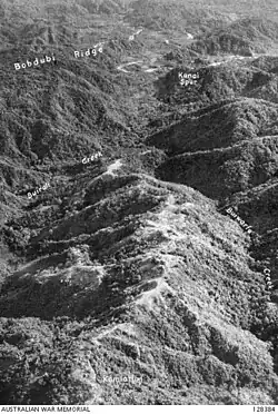 - ↑ David St Alban Dexter: Australia in the War of 1939–1945. Series 1 – Army. Hrsg.: Australian War Memorial. Volume VI – The New Guinea Offensives, 1961, Chapter 6 – The Struggle for the Ridges (englisch, amazonaws.com [PDF; abgerufen am 17. Dezember 2020]).