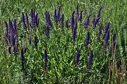 Die aromatischen Laubblätter des Wilden Salbeis (Salvia ×sylvestris; früher auch S. pratensis[71][72]) werden als Ersatz für die von Salvia officinalis verwendet.[73]