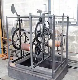 Die Uhr der Kathedrale von Salisbury wurde um 1386 zusammengebaut und im bis 1792 freistehenden Glockenturm installiert. Sie ist die älteste noch funktionierende Kirchturmuhr in Großbritannien und vermutlich der ganzen Welt.[13] Die Uhr besitzt kein Zifferblatt, dafür ertönt jede volle Stunde eine Glocke. Nach dem Abriss des Campanile bauten Handwerker die Uhr in den verbliebenen Turm der Kathedrale ein, wo sie bis 1884 in Betrieb war. Danach wurde sie abmontiert, eingelagert und vergessen, zufällig jedoch 1929 auf einem der Dachböden des Doms wiederentdeckt. Nach Reparatur und Restaurierung im Jahre 1956 erfolgte die Wiederinbetriebnahme. 2007 folgten weitere Reparaturen und Sanierungsarbeiten.[14]