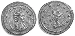 Möglicherweise schon bei der Erhebung des Gallienus zum Mitregenten seines Vaters Valerian und der Verleihung des Titels Augustus an ihn im Herbst 253 erhielt Salonina den Titel Augusta, den sie spätestens 254 führte. Es ist davon auszugehen, dass sie damals schon seit mehreren Jahren mit Gallienus verheiratet war und dass ihre beiden ältesten Söhne 253 bereits am Leben waren; ihre ersten Münzporträts zeigen eine nicht mehr junge Frau.[2] Ihr ältester Sohn, Valerianus, starb 258, der zweite, Saloninus, wurde 260 vom Usurpator Postumus getötet. Der dritte Sohn, Marinianus, wurde wohl erst 265/266 geboren.