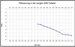 | Beste Platzierungen in den Austragungsländern der FIFA-Fußballweltmeisterschaften | |