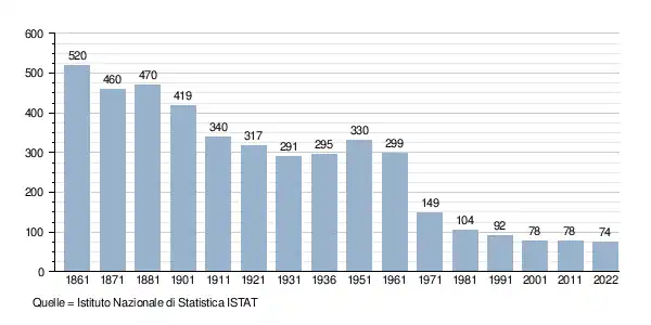 - ↑ Bilancio demografico e popolazione residente per sesso al 31 dicembre 2024. ISTAT. (Bevölkerungsstatistiken des Istituto Nazionale di Statistica, Stand 31. Dezember 2024).