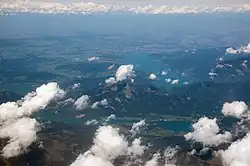 Mitte des 19. Jahrhunderts wurde schon das Attersee-Gebiet zum Salzkammergut gerechnet,[11] um 1900 auch das Mondseeland mit Mond- und Irrsee[12][13] und der eigentliche Attergau.[14][15] Seit Mitte des 20. Jahrhunderts wird das Salzkammergut in Grenzen gesehen, die vom Grimming über Dachstein, Gamsfeld, Fuschlsee, Schober, St. Georgen, Vorchdorf, das Almtal und den Großen Priel reichen, also nahezu das gesamte alpine Einzugsgebiet der Traun.[8]