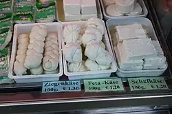 Salzlakenkäse, der aus günstigerer Kuhmilch hergestellt wurde oder der zwar aus Schafs- oder Ziegenmilch hergestellt wurde, aber nicht aus Griechenland stammt, ist unter Bezeichnungen wie Hirtenkäse, Balkankäse oder Weißer Käse im Handel erhältlich.