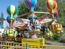 Der Balloon Race ist größer als der Samba Balloon. Er hat eine größere Rotationsfläche und kann bis zu ca. 5 m angehoben werden. Die Gondeln schwingen weit hinaus.