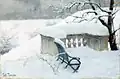 Fritz Thaulow | Bank im Schnee, aus dem Elbpark | Pastell auf Papier | 40 × 59 cm | 1892 | Geschenk Alfred Beit, 1926 verkauft, Verbleib unbekannt |