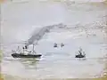 Gustav Marx | Hafen von Teufelsbrück | Pastell auf Papier | 53,5 × 77,5 cm | 1890 | Erworben aus verschiedenen Beiträgen, 1919 verkauft, Verbleib unbekannt |