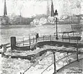 Ludwig Dettmann | Am Deich bei Waltershof | Aquarell auf Papier | 41 × 73.5 cm | 1890 | Erworben aus verschiedenen Beiträgen 1923 verkauft, Verbleib unbekannt |