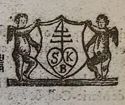 Kneubühlers Druckermarke mit den Initialen S K B hat sich auf dem Titelblatt einer Ausgabe der Zeitung La Gazette von 1677 erhalten.[17]