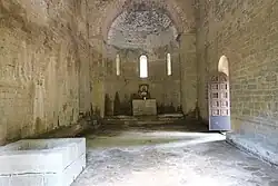 Die Kirche ist aus regelmäßig behauenen und sorgfältig aneinandergereihten Steinen errichtet. An das einschiffige Langhaus schließen sich im Osten ein schmales, rechteckiges Chorjoch und eine halbrunde Apsis an, die mit einer Kalotte gedeckt ist. Der Chor ist um drei Stufen erhöht. An der Nordseite des Kirchenschiffs öffnet sich eine Tür zum Turm, von dem nur noch der Unterbau erhalten ist. Die beiden Portale der Kirche befinden sich an der Süd- und Westfassade.