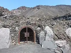 Bei der Fuenta Santa (Karte) handelt es sich um eine heiße Quelle, deren Wasser schon im 16. und 17. Jahrhundert zur Heilung verschiedener Krankheiten genutzt wurde. Ursprünglich hieß die Quelle Fuente Caliente, wovon sich auch der ursprüngliche Name Fuencaliente von Los Canarios ableitet. Auf Grund der Heilkraft, die dem Wasser nachgesagt wird, wurde sie in Fuenta Santa umbenannt. Beim Ausbruch des San Antonio 1677 wurde sie komplett verschüttet. Obwohl über die Jahrhunderte immer nach ihr gesucht wurde, wurde sie erst 2005 bei Grabungsarbeiten in einer Tiefe von ca. 187 Metern wiederentdeckt. 2007 war die Quelle zum ersten und einzigen Mal der Öffentlichkeit für vier Tage zugänglich.[12] Seither laufen Bemühungen, hier ein Thermalbad zu bauen.[13] Bis heute allerdings ist nichts weiter passiert. Anhaltende Streitigkeiten zwischen der Gemeinde und der Regierung über Finanzierung und Gewinn verhindern den Bau des Thermalbades. Die bisher aufwendig rekonstruierte Quelle mit den im Stollen liegenden Becken ist dadurch für die Öffentlichkeit nicht zugänglich. Einzig in ein kleines Becken außerhalb wird heißes Wasser aus der Quelle geleitet.[14]