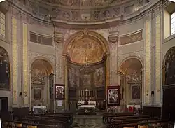 Die Wölbung über der Apsis der Chorkapelle ist eine Arbeit des ferraresischen Malers Clemente Maiola, eines Schülers Pietro da Cortonas. Es stellt Gottvater und Heilige dar. Ebenfalls von Maiola stammen die Fresken zu den Seiten des Altarretabels, links Predigt des heiligen Bernhardin, rechts Tod des heiligen Bernhardin.