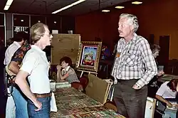 Verleger Bruce Hamilton (re.) mit dem Herausgeber des Comics Buyer's Guide Alan Light auf der San Diego Comic-Con 1982