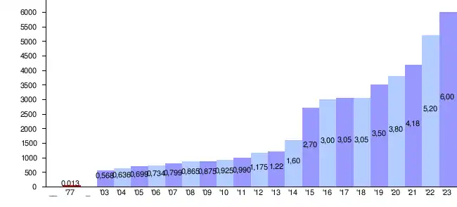 - ↑ San Francisco 49ers franchise value from 2002 to 2023 (in million U.S. dollars). Statista, abgerufen am 26. August 2024 (englisch).