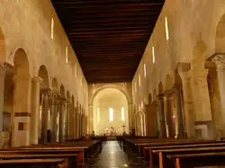 Das Raumgefühl ist durch das breite, hohe Mittelschiff und die schmalen, niedrigen Seitenschiffe wiedergeben. Schlanke Säulenreihen, deren Rhythmus in unregelmäßigen Abständen von Kreuzpfeilern unterbunden wird, sind durch kurze Bögen verbunden. In toskanischer Weise verwendete man römische Säulen aus Marmor und Granit, deren Vielfalt an Formen und Farbtönungen der feierlichen Einförmigkeit des Quaderwerks eine verhaltene Fröhlichkeit entgegensetzt. Die schlichten quadratischen Steinplatten (Abaken) über den Kapitellen, die auch in den toskanischen Kirchen des 11. Jahrhunderts (z. B. San Piero a Grado) und im Dom von Pisa anzutreffen sind, wurden während des 12. Jahrhunderts auf Sardinien und in der Toskana von nahezu allen Kirchen übernommen. Im Gegensatz zu dem mit Balken gedeckten Grundtypus der toskanischen Kirchen besitzt hier nur das Mittelschiff eine Balkendecke. In den Seitenschiffen lassen die Kreuzgewölbe mit den unverzierten niedrigen Gurtbögen lombardischen Einfluss erkennen.