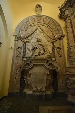 Die beiden großen Grabmäler von Galeazzo Carracciolo und von Nicolantonio Carraciolo sind Werke von Giovanni Domenico D’Auria und Annibale Caccavello (1557).[12]