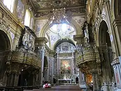 Um 1745 gab es weitere bauliche Maßnahmen mit einer stilistischen Angleichung der Kirche an den Geschmack des Rokoko: diese Arbeiten wurden von Nicola Tagliacozzi Canale geleitet und durchgeführt, der Schnitzereien an der Decke des Kirchenschiffes und die Gitter des Nonnenchores schuf, außerdem Stuckdekor und Vergoldungen, und die Tore und Geländer der Kapellen aus Messing.[7] 1759 wurde auf Wunsch der Nonnen der so genannte „Winterchor“ im zweiten Stock der Eingangshalle erbaut – an einem Ort, der für die Nonnen nachts oder im Winter zum Rezitieren von Gebeten leichter zu erreichen war.[9]