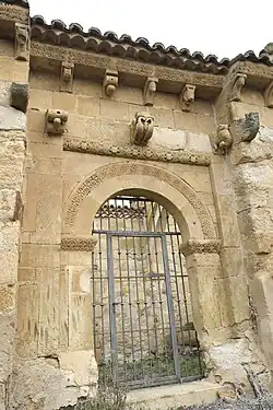 Besondere Beachtung verdient das Rundbogenportal der Südfassade, das nur eine einzige Archivolte aufweist. Diese ist mit einem Fries von Rosetten besetzt. Das Portal wird von einem Alfiz eingerahmt, dessen oberer Abschluss mit einem Fries aus Blattwerk und kleinen katzenartigen Köpfen skulptiert ist.