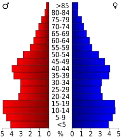 Auf das gesamte County bezogen setzte sich die Bevölkerung zusammen aus 29,60 % Einwohnern unter 18 Jahren, 7,50 % zwischen 18 und 24 Jahren, 30,10 % zwischen 25 und 44 Jahren, 22,20 % zwischen 45 und 64 Jahren und 10,60 % waren 65 Jahre alt oder darüber. Das Durchschnittsalter betrug 35 Jahre. Auf 100 weibliche Personen kamen 95,20 männliche Personen, auf 100 Frauen im Alter ab 18 Jahren kamen statistisch 91,70 Männer.