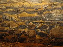 1992 entdeckte man die Thermen, die aus dem 2. Jahrhundert stammten. Neben einem Caldarium fand sich ein Hypokaustum. Insgesamt liessen sich mehrere Bauphasen unterscheiden, die eine Nutzung des Komplexes zwischen der Mitte des 2. und dem 7. Jahrhundert belegen. Im 3. und 4. Jahrhundert wurden Wohnmöglichkeiten geschaffen, bevor im 5. Jahrhundert weitere Umbauten erfolgten. Schliesslich wurde im 6./7. Jahrhundert, nach einer Phase, in der die Gebäude unbewohnt waren, ein Kopfsteinpflaster verlegt.