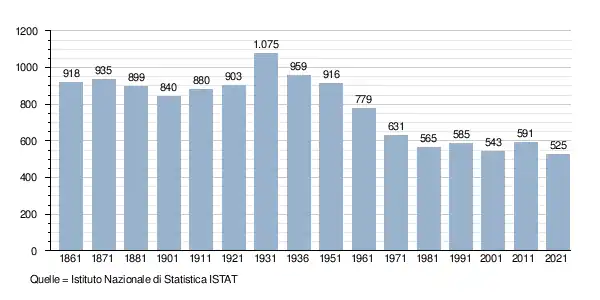 - ↑ Bilancio demografico e popolazione residente per sesso al 31 dicembre 2024. ISTAT. (Bevölkerungsstatistiken des Istituto Nazionale di Statistica, Stand 31. Dezember 2024).