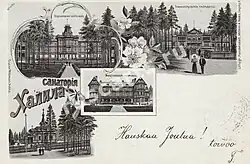 In der Folge wurde das Sanatoriumsgebäude erweitert, um 30 weitere Patienten unterbringen zu können. Das Gebäude erhielt eine elektrische Beleuchtung und einen Anschluss an die Wasserversorgung. Außerdem erfolgte der Bau einer orthodoxen Kirche für Alexander Newski. Die aus Holz errichtete Kirche brande später nieder und wurde von 1905 bis 1907 als Steingebäude errichtet.[3] Diese wurde ab 1925 auch für evangelisch-lutherische Gottesdienste genutzt.[4]