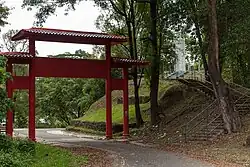 Die Gedenkstätte befindet sich nahe der Einfahrt zum chinesischen Friedhof Sandakan. Rechts neben dem Tor führen Betonstufen etwa sechs Meter hoch auf eine kleine Erhebung, die von einem gefliesten Quadrat von sechs Meter Seitenlänge gekrönt ist. Durch Gliederketten verbundene Steinpfosten begrenzen die Gedenkstätte, die aus einer etwa drei Meter hohen Stele und zwei flankierenden Gedenksteinen besteht.