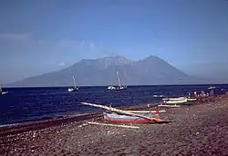 - ↑ Andesitische Laven mit Einschlüssen von Dioriten und Granodioriten, ferner aus reinem Olivinbasalt und Olivinbasalt mit Andesiten; vgl. Ehrat (1929), Verbeek (1908), Elbert (1912)