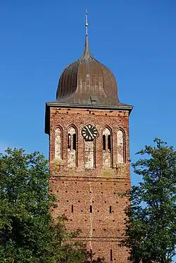 In der Turmhalle stehen das Uhrwerk und das Zifferblatt (Durchmesser zwei Meter) der alten Turmuhr von Christian Möllinger (1754–1826), Ober-Hofuhrmacher des preußischen Königs (1754–1826) in Berlin um 1817 (Widmungsinschrift).