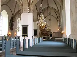 Hinsichtlich der Ausstattungsstücke ist ein Altarbild aus dem Jahr 1636 hervorzuheben. Im Langhaus hängt eine im Jahr 1905 von Anders Gilberg hergestelltes Votivschiff mit dem Namen Martin Luther.