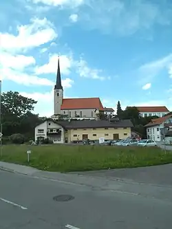 Während des Landshuter Erbfolgekriegs brannte die Pfarrkirche im Jahr 1504 nieder. Das heute vorhandene Kirchengebäude entstand 1520; die gotischen Fresken im Kirchenschiff wurden bis 1535 vollendet.[2]