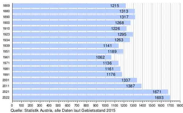 Die Einwohnerzahl im Gebiet der (heutigen) Gemeinde liegt seit dem 19. Jahrhundert bei ungefähr 1300 Personen und nahm nur in der Zeit des Zweiten Weltkrieges und danach etwas ab. Die Zunahme seit 1991 basiert auf einer positiven Wanderungsbilanz.[12]