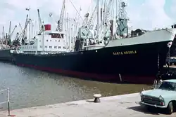Im Januar 1950, unmittelbar nach dem Fall der Beschränkungen des Baus von Seeschiffen durch das Potsdamer Abkommen bestellte die Reederei Hamburg-Südamerikanische Dampfschiffahrts-Gesellschaft Eggert & Amsinck die ersten vier Schiffe der Santa-Klasse bei den Hamburger Howaldtswerken. Diese vier Schiffe, die Santa Ursula, Santa Elena, Santa Catarina und Santa Isabel, stellten die ersten Nachkriegsneubauten von Linienfrachtschiffen nach den Bestimmungen des im November 1949 vereinbarten Petersberger Abkommens dar.[1] Schiffbaulich waren die ersten vier Einheiten nahezu baugleiche Nachbauten der Vorkriegsfrachtschiffe der Belgrano-Klasse des Südamerikadienstes, die zusätzlich mit Passagiereinrichtungen versehen worden waren.