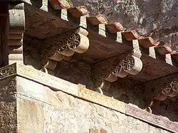 Hufeisenbögen verbinden die Raumteile miteinander. Sie ruhen auf wuchtigen Pfeilern mit eingestellten Säulen. Reste von Stuck auf den Basen lassen vermuten, dass die Säulen ehemals farbig gefasst waren. Die monolithischen Schäfte tragen korinthische Kapitelle, die mit zwei oder drei Reihen stilisierter Blätter verziert und unten von einem Taubandring begrenzt sind. Die auf den Kapitellen aufliegenden Kämpfer weisen doppelte Kehlprofile auf.