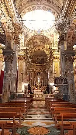Die Kirche wurde im Barockstil nach einem Entwurf des Architekten Giovanni Battista Ghiso erbaut, der ein Gebäude auf dem Grundriss eines lateinischen Kreuzes entwarf, das durch Säulen in drei Schiffe unterteilt ist und von einer Kuppel gekrönt wird. Die Fassade wurde nach Osten gedreht, wodurch sich die ursprüngliche Ausrichtung der Kirche änderte, deren steinerner Glockenturm jedoch erhalten blieb.