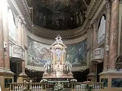 Die Apsis ist mit einem Fresko von Giovanni Battista Epis bemalt, auf dem Papst Pius IX. das Dogma der Unbefleckten Empfängnis verkündet, während der 1907 von Angelo Roncalli geweihte Hochaltar die biblischen Heldinnen von den Brüdern Cesare und Andrea Paleni darstellt.[8]