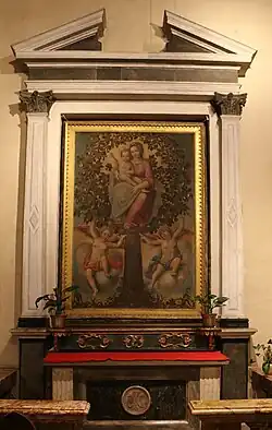 Die Kirche wurde aus Bruchstein und Geröll erbaut. Der Bau ist einschiffig. Schiff und Chor haben Satteldächer. Der Turm wurde 1488 errichtet und später aufgestockt. An die Hauptfassade wurde im 17. Jahrhundert ein Portikus angebaut. Über dem Eingangsportal befindet sich das Fresko einer Schutzmantelmadonna. Das Werk aus dem 16. Jahrhundert wurde dem Maestro di San Rocco a Pallanza, einem Schüler von Leonardo da Vinci, zugeordnet. Der Maler Giovanni Antonio de Lagaia malte die Hauptaltartafel (1519).[1]