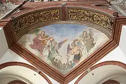 Die Fresken im Presbyterium von 1542 stammen von Giovan Battista della Cerva, einem Schüler von Gaudenzio Ferrari, und zeigen die Verkündigung an den Säulen, die Anbetung der Heiligen Drei Könige an der linken Wand und die Anbetung der Hirten an der rechten Wand. Die musizierenden Engel im Segel des Eckbogens auf der rechten Seite des Presbyteriums sowie die Engel und Pilaster der Dekoration werden ebenfalls della Cerva zugeschrieben. Das Abendmahl Jesu im Altar rechts vom Hochaltar stammt von Gaudenzio Ferrari und Giovan Battista della Cerva, während die Gemälde in den Lünetten der Portale, die die Madonna mit Kind, Johannes und musizierenden Engeln (Westen) und die Rosenkranzmadonna mit Kind und Putten (Süden) darstellen, Raffaele Crespi zugeschrieben werden. Diese beiden Fresken wurden 1939 aufgrund ihres kritischen Erhaltungszustandes abgenommen und nie wieder angebracht.