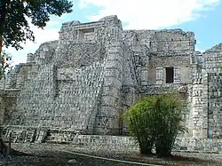 Auf seinen drei Stockwerken verfügt der Palast über 44 Räume. Anders als die gleich großen oder größeren Paläste im Puuc-Gebiet ist er aber nicht das Ergebnis einer längeren baulichen Entwicklung, sondern wurde nach einem raffinierten Plan in einem Schritt errichtet. Allein die Zahl und Anordnung der Treppen macht die präzise Planung deutlich. Die Schauseite des Palastes ist nach Osten gerichtet. Auf dieser Seite führt eine monumentale Treppe zum dritten Niveau und landet vor einem gewaltigen Schlangenmauleingang.