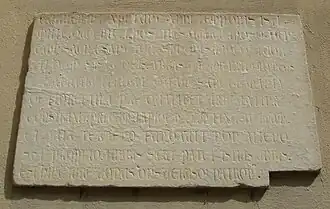 An der Kirchenfassade befindet sich eine Gedenktafel aus dem 13. Jahrhundert: