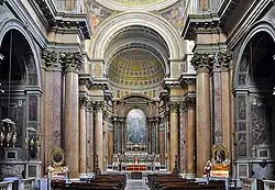 Die acht Seitenkapellen sind dem Kreuz, dem hl. Philipp Neri, dem hl. Apostel Matthias, der Muttergottes Maria und den heiligen Josef und Benedikt, dem hl. Papst Gregor dem Großen, den heiligen Augustinus und Franz von Assisi (mit einem Altargemälde von Giuseppe Cesari), dem heiligen Karl Borromäus, und dem hl. Giovanni Battista de Rossi geweiht. Die Reliquien des 1881 heiliggesprochenen Giovanni Battista de Rossi (1698–1764) wurden ursprünglich in dieser Kapelle verwahrt, jedoch am 23. Mai 1965 in die ihm geweihte neue römische Kirche San Giovanni Battista de Rossi überführt.
