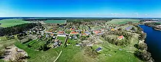Die Kirche, die sich zwischen dem Hofsee und der Dorfstraße befindet, wurde 1284 erbaut. Nachdem sie im Dreißigjährigen Krieg zerstört worden war, erfolgte ein Wiederaufbau, welcher um 1700 abgeschlossen wurde. Seit Mitte der 1990er Jahre wurden, teilweise durch Spenden finanziert, immer wieder Teile der Kirche restauriert. Das Geläut befindet sich außerhalb der Kirche in einem Glockenstuhl. Oben auf der Glocke ist ein Ornamentband mit dem Spruch „Frieden auf Erden“ befestigt. Auf der Rückseite trägt sie die Inschrift „Franz Schilling Apolda 1919“. Auf dem Friedhof befinden sich Gräber der Adelsfamilie Flotow.[4] Das Pfarrhaus wird heute nicht mehr von der Familie des Pfarrers bewohnt.