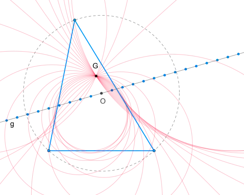 Der Satz von Griffiths, benannt nach dem britischen Mathematiker John Griffiths (1837–1916), ist eine Aussage aus der Elementargeometrie. Sie besagt, dass die Fußpunktkreise aller Punkte, die auf einer gemeinsamen Geraden durch den Umkreismittelpunkt des zugehörigen Dreiecks liegen, sich in einem gemeinsamen Punkt schneiden. Dieser durch ein Dreieck und eine Gerade durch dessen Umkreismittelpunkt bestimmte Punkt wird auch als Griffiths-Punkt bezeichnet und liegt zudem auch auf dem Feuerbachkreis des Dreiecks.[1]
